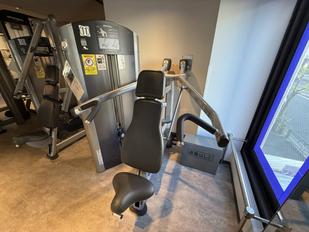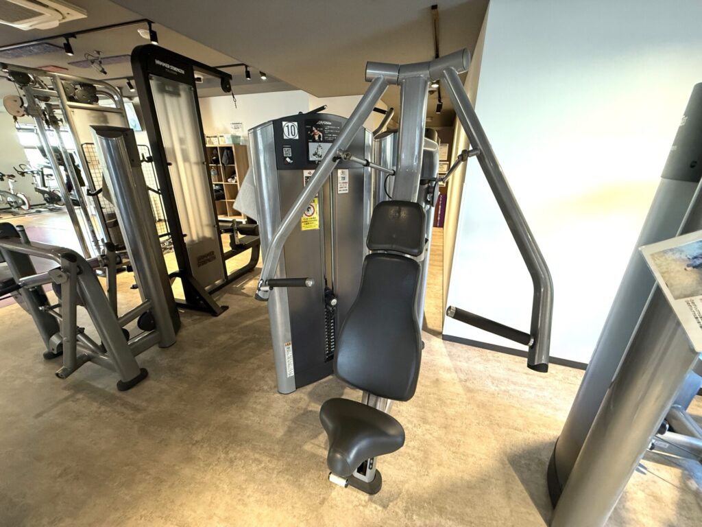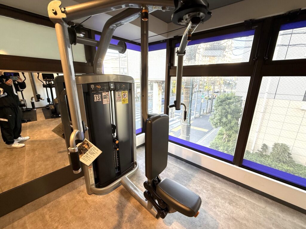 主に大胸筋、三角筋後部を鍛えることができるマシンです。