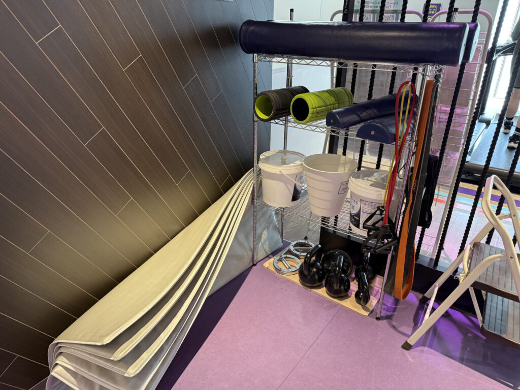 ストレッチをしたり、体幹を鍛えたり、バランス感覚を向上させたりするトレーニングを行うエリアです。