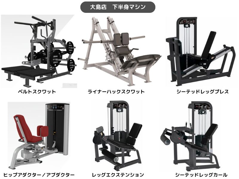 主に大腿四頭筋、ハムストリングス、大殿筋を鍛えられます。