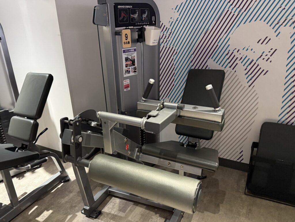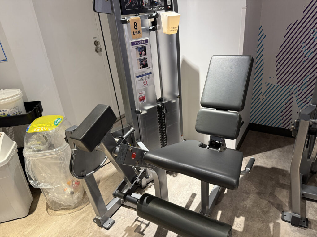 太もも前側の筋肉(大腿四頭筋)を鍛えられるマシンです。
